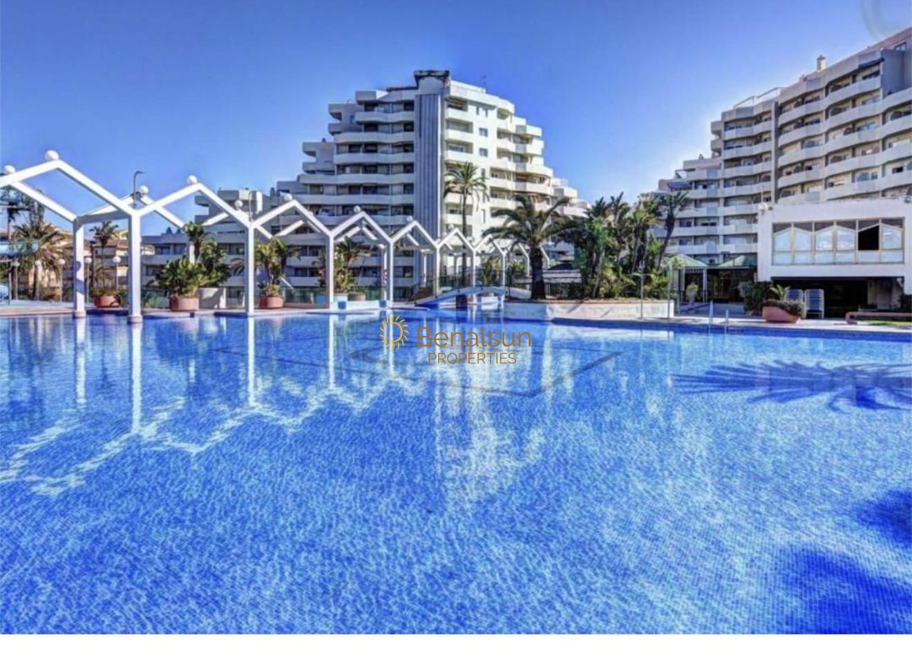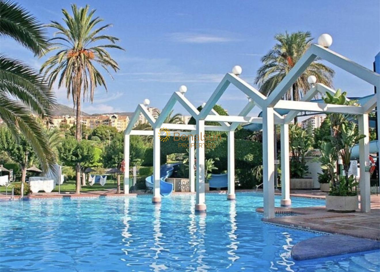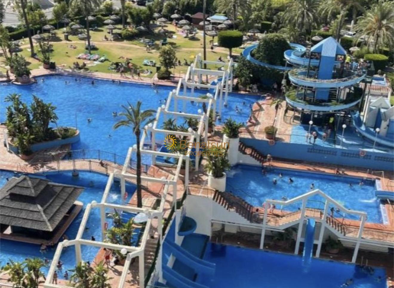 Located in one of the most sought-after urbanisations in Benalmadena, it has 10,000 metres of landscaped gardens with lakes, waterslide gardens and pools, supermarket, gym, pool bar/restaurant. In front of Parque de la Paloma, taxi rank at the exit of the complex, bus stop, beach 60 meters away and promenade with restaurants, shops, pharmacy in front, cafes. An ideal investment to rent it for a short term.