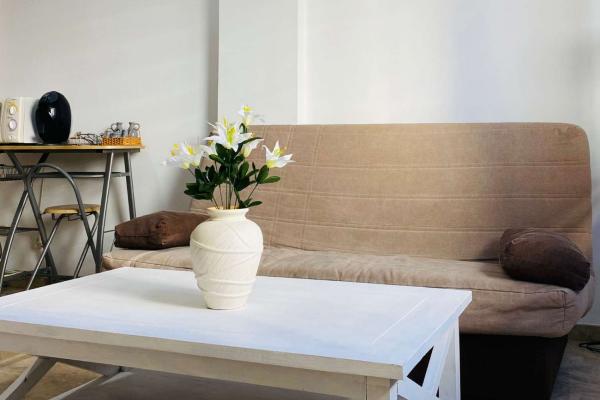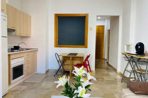 Tiene 48 m2 construidos , orientación este , planta , baja . 1 plaza de garaje / ventiladores de techo en salón y dormitorio (no hace falta aire acondicionado por la orientacion sol de mañana de la vivienda