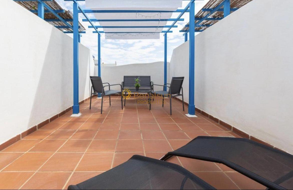 Planta superior solárium muy acogedor con sol todo el día y barbacoa .