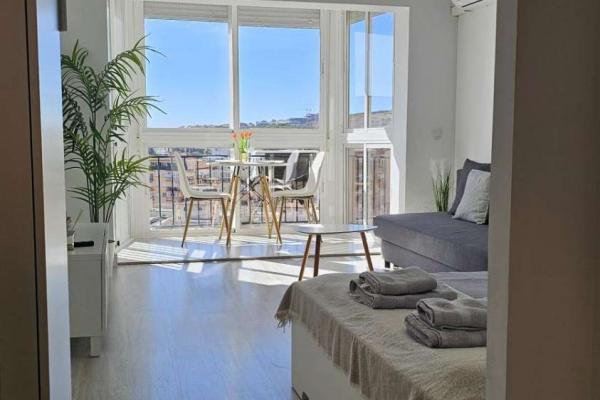 LA VIVIENDA CONSTA DE SALON /DORMITORIO CON CAMA DE MATRINMONIO Y SOFA CAMA , COCINA AMERICNA Y BAÑO . TERRAZA INCORPORADA AL SALON CON GRAN VENTANAL MUY LUMINOSO