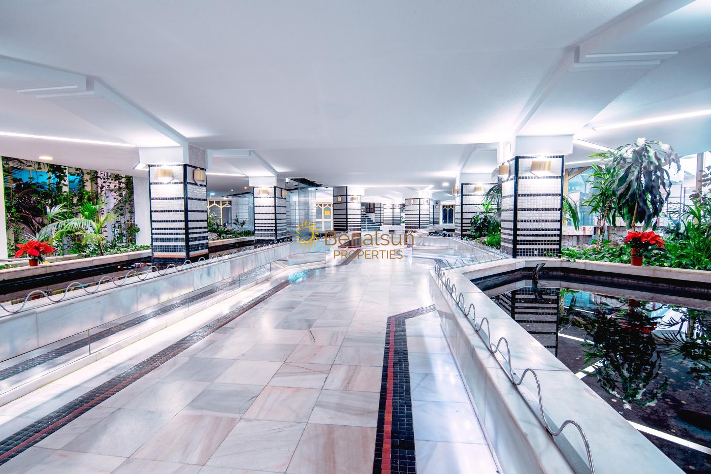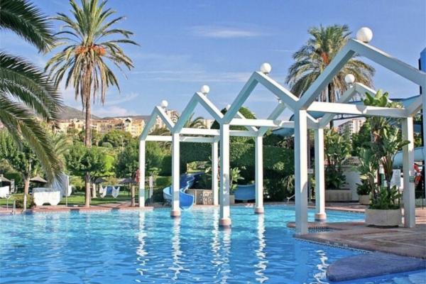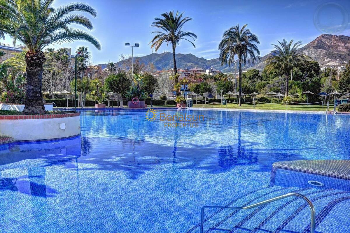 Situada en una de las urbanizaciones más demandadas de Benalmádena , cuenta con 10.000 metros de jardines con lagos , jardines y piscinas de toboganes , supermercado, gimnasio , bar / restaurante de piscina . Enfrente de parque de la paloma , parada de taxis a la salida del complejo , parada de bus , playa a 60 metros y paseo mariítimo con restaurantes , comercios , farmacia enfrente , cafeterías .Una inversión ideal para alquilarlo por corta temporada .