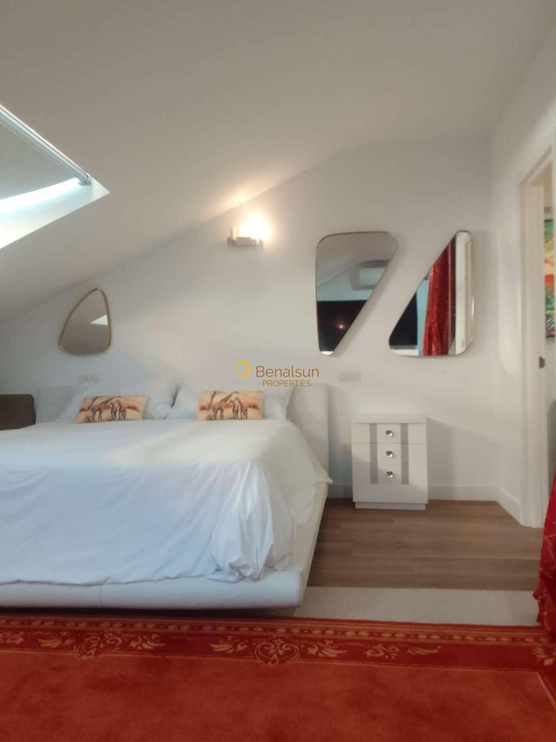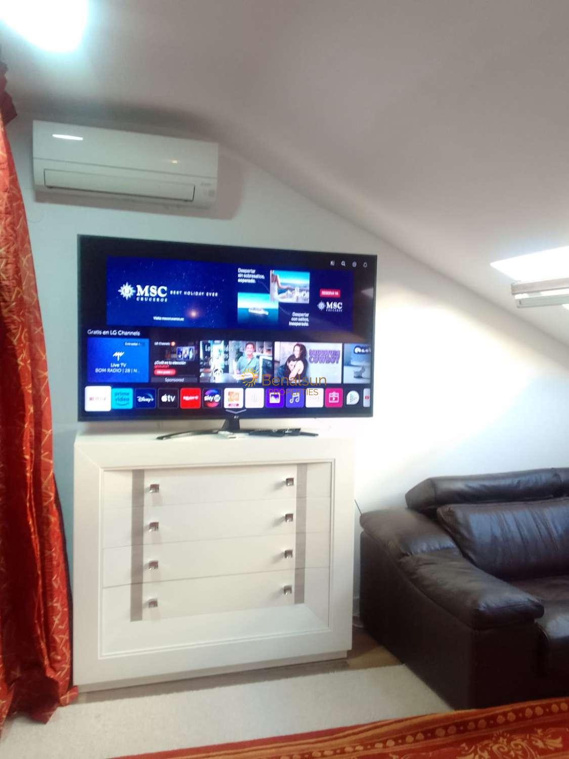 Vuokraus 01.09.2026–30.06.2027 upea kolmen makuuhuoneen kaksiasunto Fuengirolan keskustassa lähellä yrityksiä, ravintoloita sekä bussi- ja junapysäkkejä. Kiinteistö on jaettu kahteen kerrokseen: ensimmäisessä kerroksessa sijaitsevat olohuone, keittiö, 2 makuuhuonetta ja 1 kylpyhuone sekä 1 tilava makuuhuone, jonka koko on lähes 25 m2, ja yksi kylpyhuone omassa kylpyhuoneessa. Olohuoneesta ja yhdestä makuuhuoneesta on parvekkeita, joista avautuu näkymä ulos. Ilmastointi yläkerrassa ja olohuoneessa. Tuulettimet ovat muissa kahdessa makuuhuoneessa. Moderni ja valoisaa kiinteistöä. Ainutlaatuinen tilaisuus asua erittäin halutulla alueella. Ihanteellinen etätyöhön osallistuville.