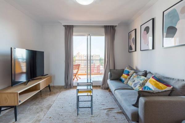 Utmerket beliggenhet, 10 minutters gange fra stranden og Puerto Marina med alle tjenester innen gangavstand, restauranter, banker, kollektivtransport, supermarkeder osv.