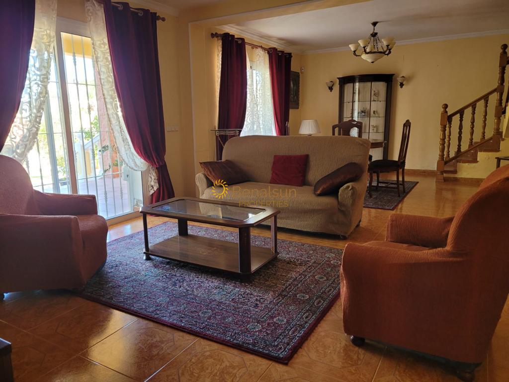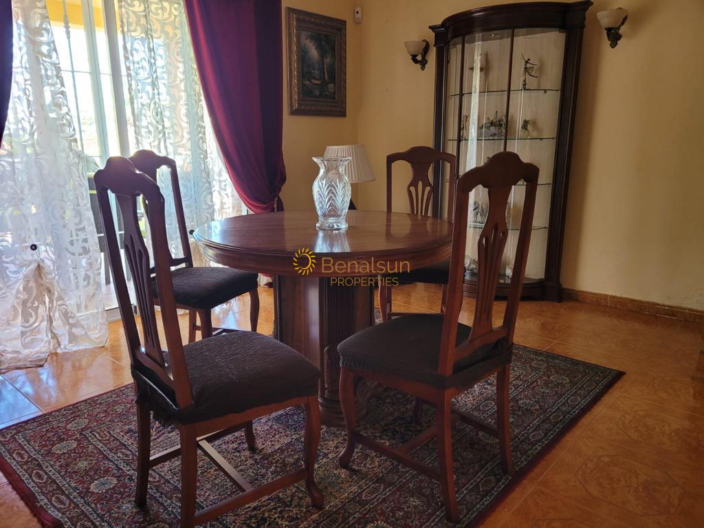 BOTTENVÅNING: PARKERING FÖR 2 FORDON INNE I HUSET, VERANDA, ENTRÉHALL, SEPARAT KÖK, STORT VARDAGSRUM, 1 STORT SOVRUM + 1 BADRUM, TERRASS OCH TRÄDGÅRD MED MYCKET VÄLSKÖTT POOL.
